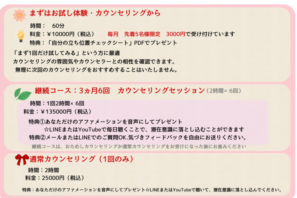 これが、あなたのありのままにたどり着くための私の継続カウンセリングです。