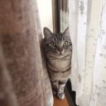 猫がいないなーと思ったら カーテンに猫影が映り、 そーっとのぞくと カ…
