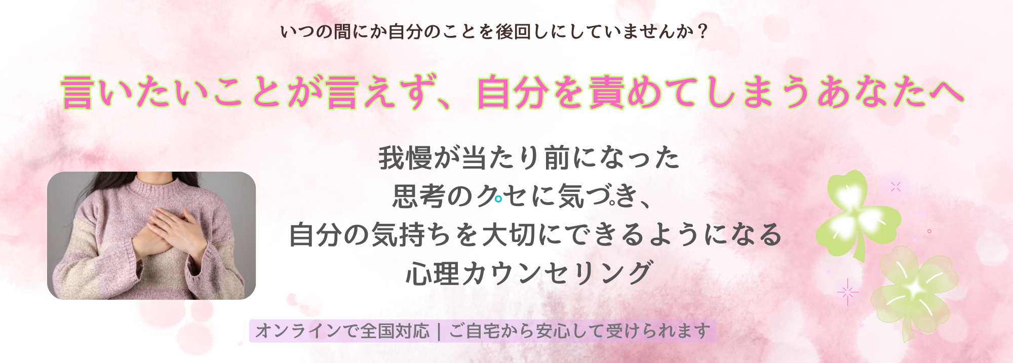 あなたのペースを大切にしながら、心が少しずつゆるんでいくプロセスをサポートします。